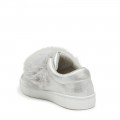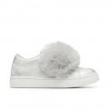 Zapato sport con velcro Primigi modelo 4448800 en color plata para niña. Corte realizado en material sintético con acabado satinado, forro interior textil con plantilla extraíble que aporta una gran transpiración, cierre mediante velcro decorado con pelito, suela de goma muy adherente y flexible.