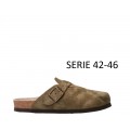 Corte realizado en piel velour de primera calidad con detalle de hebilla ajustable, dispone de plantilla anatómica realizada en corcho natural y foam, suela Eva muy adherente y flexible. Hecho en España.
