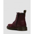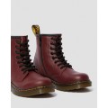 Botita infantil de 8 ojalillos en cuero Softy Dr Marten en color negro o burdeos realizadas en piel. El modelo de botas 1460 tiene una cremallera lateral, además de cordones, para que los padres puedan ponerlas y quitarlas con más facilidad. Cierre de cremallera interior. Lengüeta. Suela con cámara de aire.