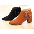 Botín de ante con tacón Hobby modelo 352 en color marrón o negro para mujer. Corte realizado en ante con puntera afilada y detalle de lazada lateral a modo decorativo, forro interior y plantilla de piel muy transpirable y confortable, cierre mediante cremallera, tacón forrado en ante con altura de 5.5 cm, suela sintética muy ligera y flexible.