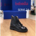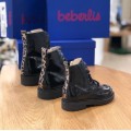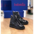 Botín de charol Beberlis con estilo militar modelo 21684 en color negro para niña. Corte liso realizado en charol, forro interior y plantilla de piel transpirable, cierre mediante cremallera lateral fácil de poner y sacar, suela de goma muy adherente para evitar resbalones.