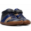 Botín para niño Camper modelo K900207 multicolor, corte realizado en piel natural muy transpirable, forro interior acolchado con plantilla anatómica extraíble y horma anatómica para un ajuste correcto. cierre mediante cordón elástico y velcro ajustable, suela de goma muy adherente para evitar resbalones.