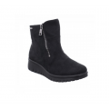 Botín de la marca Romika modelo 32961 en color negro para mujer. Corte realizado en material textil impermeable TopDryTEX que te protege de la entrada de humedad del exterior y además es muy blandito adaptándose al pie a la perfección, forro interior en material textil polar con plantilla extraíble, cierre mediante cremallera en los laterales y suela sintética muy adherente.