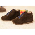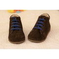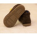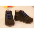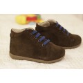 Botita Beberlis para niño modelo 17812-W16 en color caoba. Corte realizado en serraje hidrofugado, forro y plantilla interior de piel muy transpirable que permite la temperatura ideal en el interior, garantizando los pies siempre secos, el cierre es mediante cordones en tono azul haciendo contrate y suela de goma muy adherente que evita resbalones.