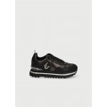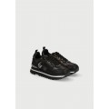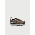 Sneakers Liujo modelo BF0069 en color negro o tostado para mujer. Corte con empeine de polipiel efecto saffiano, estampado de monograma por toda la superficie, inserciones de malla, logotipo aplicado en la cara externa del calzado, forro de poliester, cierre mediante cordones y suela de goma con plataforma dentada y logotipo grabado.