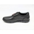 Zapato de piel ON FOOT O8902 en color negro para hombre. Corte liso realizado en piel natural muy flexible, con forro interior textil y plantilla extraíble que permite colocar otra en caso de ser necesario, cierre mediante velcro fácil de poner y sacar y suela de caucho muy flexible. Fabricación española.