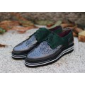 Blucher con plataforma de TUBOLARI modelo S55 combinado en dos colores plomo y verde oliva, con un diseño atrevido y diferente.Fabricado en España con materiales de primera calidad y disponible desde el 36 hasta el 41.