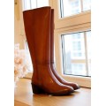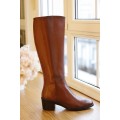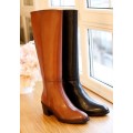 Bota de caña alta Plumers modelo 9266 en color negro y cuero. Corte liso realizado en piel natural muy suave que se adapta a la perfección a la pierna, forro interior y plantilla de piel que ofrecen una excelente transpiración, cierre mediante cremallera lateral y suela sintética muy ligera y adherente con tacón ancho de 5 cm. Altura de la caña 39 cm.