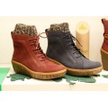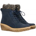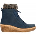 Botín de cuña El Naturalista modelo N5145 en color ocean y rioja para mujer, corte realizado en piel vacuna hidrofugada blanda y flexible que se adapta a cualquier pie, forro interior 80%lana y 20%piel con plantilla extraíble de piel, cierre mediante cordones y suela de caucho con una altura en la cuña de 5 cm.