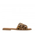 Dale un toque salvaje y sofisticado a tu look con esta sandalia plana de piel Vilma de Porronet, con diseño de pala en 'H' y estampado de leopardo en pelo natural. Los detalles de tachuelas metálicas añaden un aire de tendencia y personalidad.