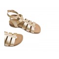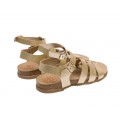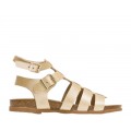Corte realizado en piel natural con diseño de tiras tipo romana, plantilla bio ergonómica acolchada que ofrece un extra de confort, cierre mediante hebilla a la altura del tobillo y suela sintética antideslizante.