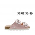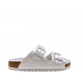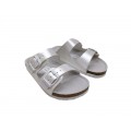 Corte fabricado material sintético en acabado nacar con detalle de hebillas en la tira para poder graduar el ancho, plantilla acolchada muy confortable, dispone de piso bio que favorece el correcto descanso del piel y la suela es sintética muy ligera y adherente.