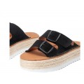Corte realizado en piel serraje y detalle de hebillas ajustables en las tiras, forro interior con plantilla acolchada muy confortable, plataforma en yute con hilos dorados de una altura de 4cm, suela sentada color blanco en material sintético muy ligera y flexible.