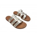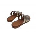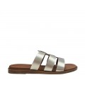 Corte realizado en piel natural metalizado oro, plantilla de piel natural acolchada muy confortable y suela de prefabricado antideslizante.