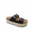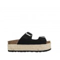 Corte realizado en piel serraje con detalle de hebillas en las tiras, plantilla de corcho forrada en piel natural que ofrece una excelente transpiración y suavidad, plataforma de yute con una altura de 5cm, la suela es sintética muy adherente.