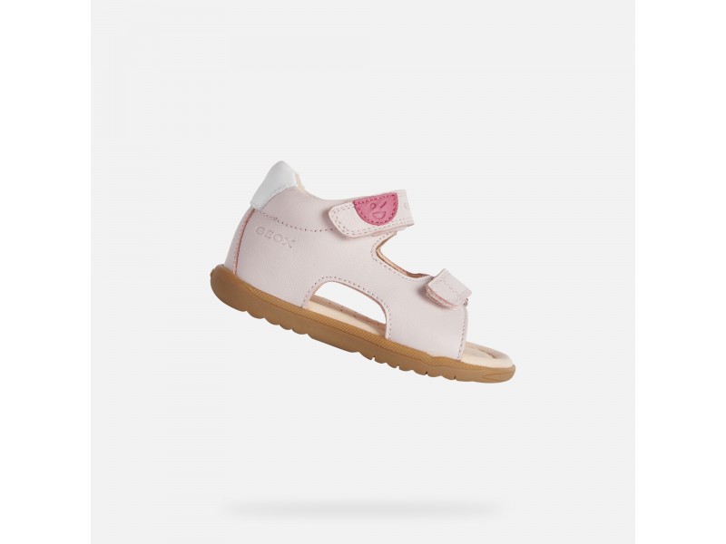 Sandalia primeros pasos Macchia de Geox modelo B254WA en color rosa. Corte realizado en piel con ajuste de velcro en la tira, forro interior de piel con plantilla libre de cromo y muy transpirable, cierre de velcro muy fácil de poner y sacar, la suela es sintética, muy flexible, ligera y antideslizante para evitar los tan temidos resbalones, además cuenta con la tecnología Geox Respira para asegurar la correcta temperatura en el interior.