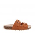 Corte fabricado en piel serraje con detalle de hebillas en el empeine para lograr el ajuste correcto, plantilla acolchada de piel serraje muy confortable y suela EVA muy adherente. Fabricación española.