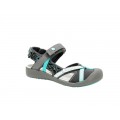 La sandalia Palmera 01 Chiruca gris para mujer. Es un modelo anfibio recomendado para rutas con arroyos, playa, piscina o tramos del camino de Santiago.