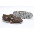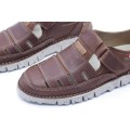 Sandalia cerrada On Foot modelo 802 en color marrón para hombre. Corte fabricado en piel vacuno de tacto muy suave que ofrece un agradable confort, forro interior textil con plantilla extraíble para facilitar la limpieza e higiene o colocar otra ortopédica en caso de ser necesario, cierre mediante velcro ajustable y suela sintética muy ligera de gran adherencia. Fabricación española.