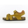 Sandalia para niño Pablosky modelo 501882 en color mostaza. Fabricada en materiales de primera calidad con forro interior textil y plantilla anatómica súper flexible y absorbente para el auténtico confort, cierre mediante doble velcro ajustable y piso de goma flexible, antideslizante y resistente al desgarro.