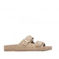 Preciosa sandalia Lena de la marca Hispanitas en color oro para mujer. Un modelo muy original que combina tiras de piel con vinilo en diferentes...