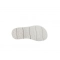 Corte realizado en material reciclado en blanco nacar, plantilla co gran amortiguación y antibacterias, cierre mediante pulsera con velcro para lograr un buen ajuste y suela de goma Superflex con gran adherencia y flexibilidad.