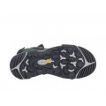 Corte fabricado en material textil color verde-gris, con ajuste de triple velcro para lograr la sujeción ideañ, entresuela de EVA y suela de caucho. 277 gramos
