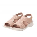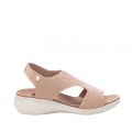 Corte realizado en material textil elástico con detalles de brillos, plantilla acolchada muy confortable, tira con elástico en el talón que se ajusta a las necesidades de cada pie, cuña baja de 3cm con suela de goma muy adherente.