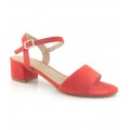 Sandalia de ante Tiziana modelo 1217 en color camel o rojo. Corte liso realizado en ante, forro interior de piel con cierre mediante hebilla ajustable a la altura del tobillo, suela de materal sintético de altura 4.5 cm. Fabricación española.