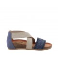 Elegante sandalia de tacón para lucir en fiestas y eventos de este vernano. En color hielo efecto rafia con tacón alto y ancho de 11 cm y...