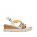 SANDALIA DE CUÑA BÁRBARA PORRONET EN COLOR BLANCO-PLATA 3155
