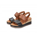 Corte realizado en piel natural con ajuste de velcro en la tira del empeine, forro interior de piel con plantilla Soft Air que reduce los impactos de casa pisada, cierre mediante velcro y suela de caucho ligera y adherente. Altura de la cuña 6cm.