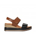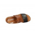 SANDALIA DE CUÑA PARA MUJER SWENAN MEPHISTO EN COLOR NEGRO-CUERO