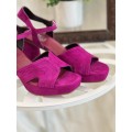 SANDALIA DE FIESTA CON TACÓN Y PLATAFORMA 3696 PLUMERS EN COLOR MORADO