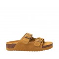 El corte consiste en dos tiras fabricadas en piel serraje con hebilla ajustable en cada una de ellas para lograr el ajuste ideal, plantilla de piel bio para mayor comodidad durante toda la jornada y suela sintética de gran adherencia.