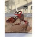 SANDALIA DE PIEL CON TACÓN 5700 LEYLAND EN COLOR CUERO-NARANJA
