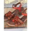 Sandalia de piel con tacón Leyland 5700 en color cuero-naranja para mujer. Un modelo cómodo ideal para tu actividad diaria, equipado con plantilla de gel para máximo confort y elaboradas en piel natural que se adapta al pie a la perfección y ofrece una transpiración excelente.