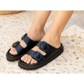 Agrega un toque de elegancia a tu look con nuestras sandalias de tacón marca Popa. Estas sandalias en color negro presentan una pulsera en el...