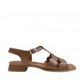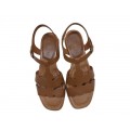 Dale un toque de color y altura a tu rutina con esta sandalia de piel de la marca Morxiva en tono naranja combinado con detalles en blanco....