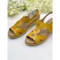 SANDALIA DE PIEL CON CUÑA 3251 SUAVE BY LEYLAND EN COLOR BEIGE O AMARILLO