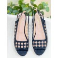 Corte realizado en piel natural con troquelados, forro interior de piel con plantilla acolchada, cierre mediante hebilla ajustable, la suela es sintética y antideslizante. Fabricación española.
