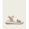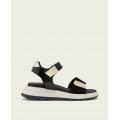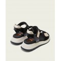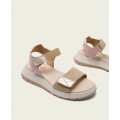 Corte de piel serraje con velcro en la tira del empeine, plantilla de piel acolchada muy confortable, cierre mediante pulsera en el tobillo con velcro ajustable, plataforma de 4 cm que combina acabados en varios materiales y tonalidades con suela de material sintético muy ligera.