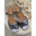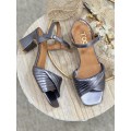 Sandalia de tacón Carmen-137 Exe en color oro. Un modelo decorado con detalle de strass en la pala con el que no pasarás desapercibida. Elegante...