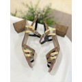 Sandalia de tacón para mujer Plumers modelo 3564 en color beige o negro. Corte realizado en ante con piezas en color dorado brillo, forro interior y plantilla de piel para una buena transpiración, cierre mediante pulsera en el tobillo con hebilla ajustable, tacón ancho forrado en ante al tono con una altura de 6.6 cm con suela sintética de gran flexibilidad y adherencia.