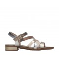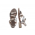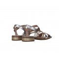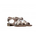 Preciosa sandalia Lena de la marca Hispanitas en color oro para mujer. Un modelo muy original que combina tiras de piel con vinilo en diferentes tonalidades.