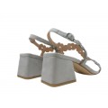 Preciosa sandalia de tacón Alma en Pena en color beige para mujer. Te enamorarás de sus detalles en pedrería, además el tacón es cuadrado con altura media muy fácil de llevar por lo que estarás siempre cómoda.