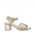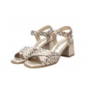 SANDALIA DE TACÓN EN PIEL TRENZADA CARMELA COLOR ORO 162192