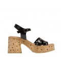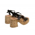 Su original tacón de corcho de 8,5 cm con plataforma de 3,5 cm estiliza la figura sin renunciar a la comodidad. Hechas artesanalmente en España, son perfectas para destacar en cualquier ocasión.