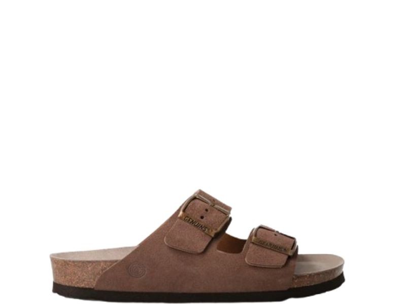 Corte fabricado en material sintético con tiras en el empeine, plantilla acolchada muy confortable, cierre mediante pulsera en el tobillo con hebilla ajustable, tacón ancho con una altura de 9 cm y suela sintética muy adherente.