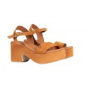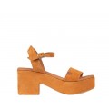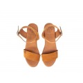 Sandalia de tacón Abaka totalmente forrada en serraje color cuero. Una sandalia de estilo sencillo a la vez que confortable ideal para llevar en cualquier ocasión este verano equipada con plantilla de piel vegana acolchada.